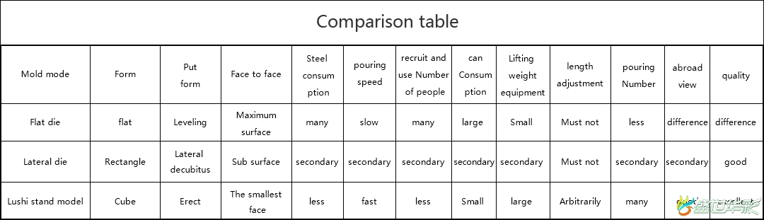 There are many kinds of molds for wall panels in China's building materials market. They can be divided into three types: flat mold, side mold and vertical mold according to the mold making, placing and pouring forms. Their respective characteristics are shown in the comparison table.