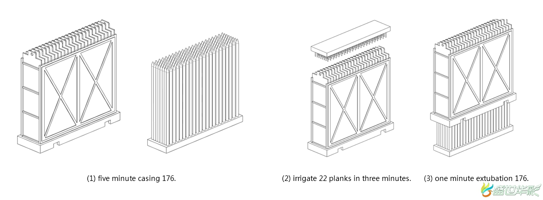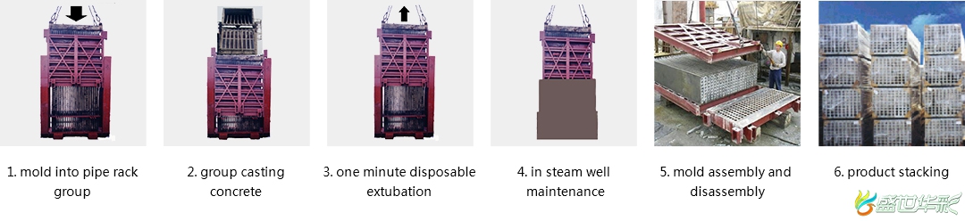 The production process of the wallboard is as follows: mixing concrete according to mixing ratio, conveying concrete by conveying equipment, pouring concrete into the "Lucas Formwork" - - pouring while vibrating (22 wallboards can be poured in 3 minutes, see Figure 2 of the mold) - - modifying one of the smallest exteriors - - - the concrete in the vertical mold reaches the drawing strength of 7 - - - pulling out. Separation of mold and pipe rack (pull-up die completed within 1 minute, see mold diagram 3) - - transporting mold inner wall board to steam pit maintenance - - - wall board to achieve design strength - - - demolition of "Lushi vertical mold" mold - - - wall board production completed - - - cleaning mold and partition - - - reassembly "Lushi vertical mold" - - hanging back to pit groove - - - mold sleeve tube Rack (5 minutes to complete, see chart 1) - recycling.